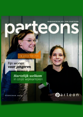 Minimaal twee keer per jaar valt ons magazine Parteons bij jou op de deurmat. Hierin lees je hoe we werken aan goed en betaalbaar wonen in de Zaanstreek. Maak je kennis met onze medewerkers en lees je de verhalen van je buren. En blijf op de hoogte van de laatste ontwikkelingen in jouw buurt.
