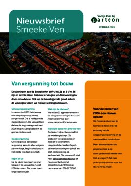 Begin februari (2026) hebben we een nieuwsbrief verspreid in de buurt. Daarin vertellen we meer over hoe het gaat met de aanvraag van de omgevingsvergunning en de voorbereidingen voor het slopen. De nieuwsbrief en eerder gedeelde informatie vind je onderaan deze pagina.